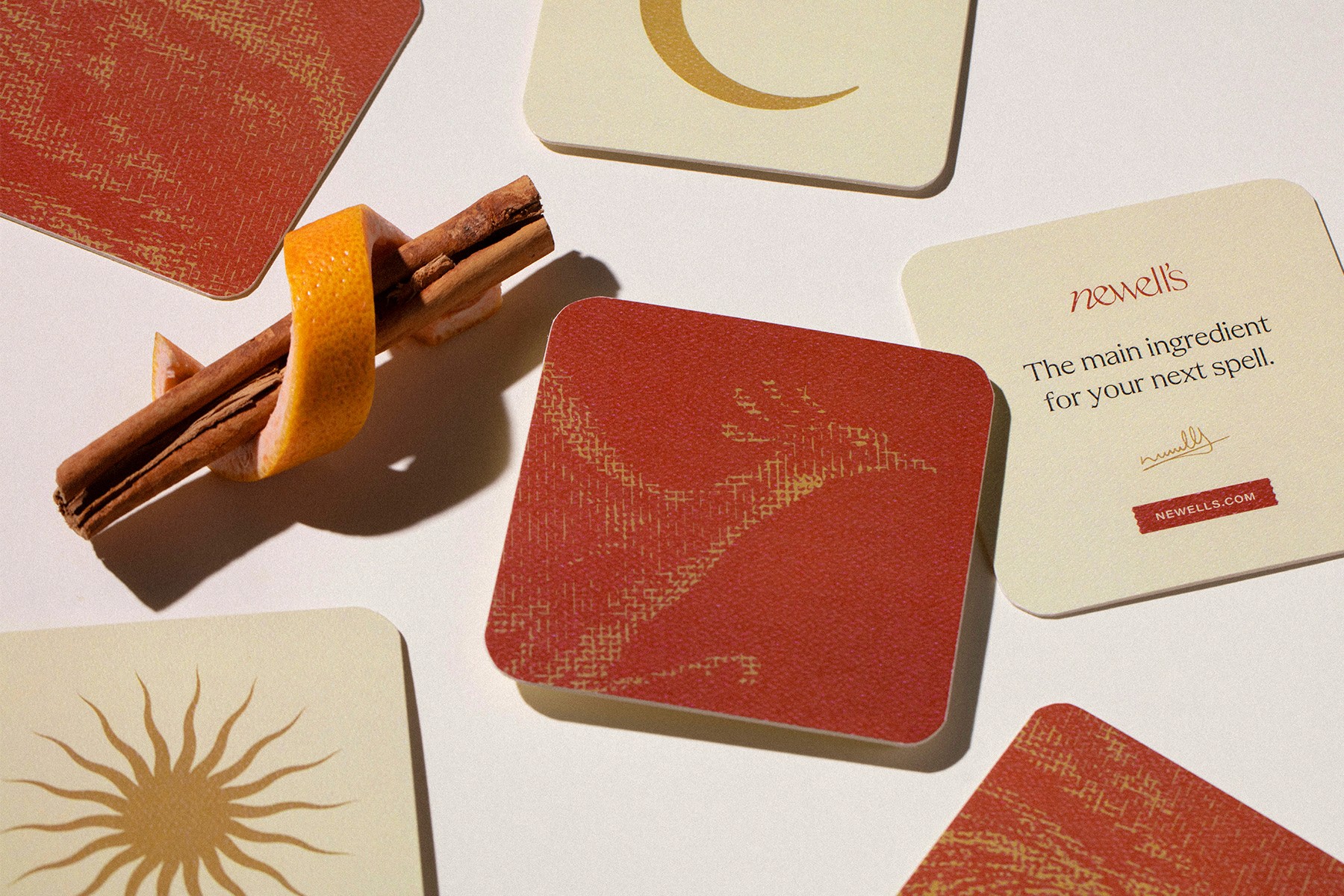 I needed to create an identity that felt magical while still feeling refined and elegant. I created a set of labels for the bottle inspired on apothecary bottles and created a textured illustration to be used as a pattern, reminiscing of old textured book covers.